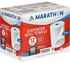 Marathon Roll Towel Hardwound and Bleached, 2-ply, 8" X 450'